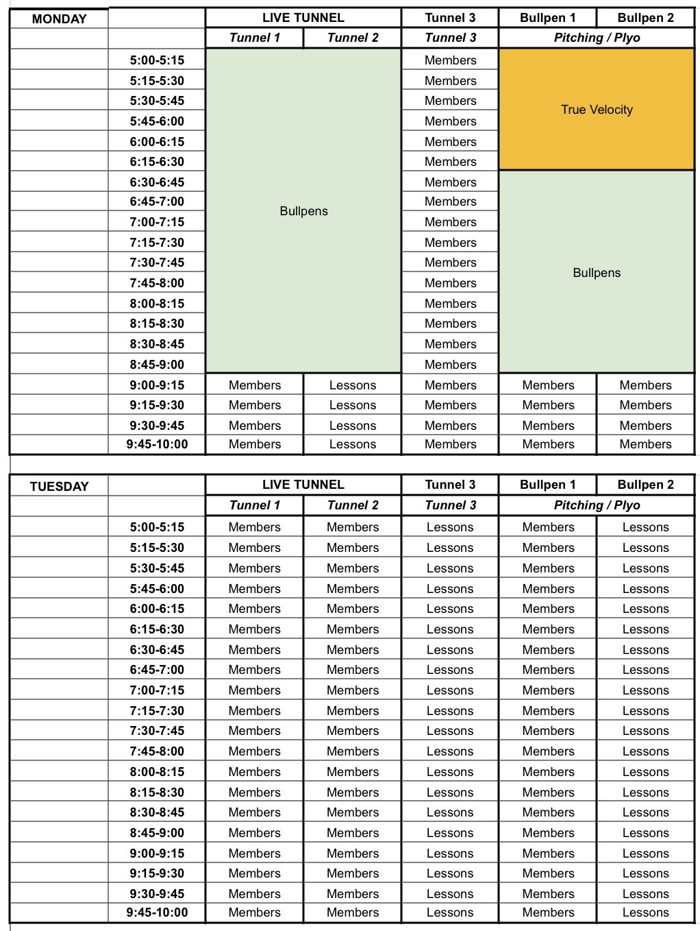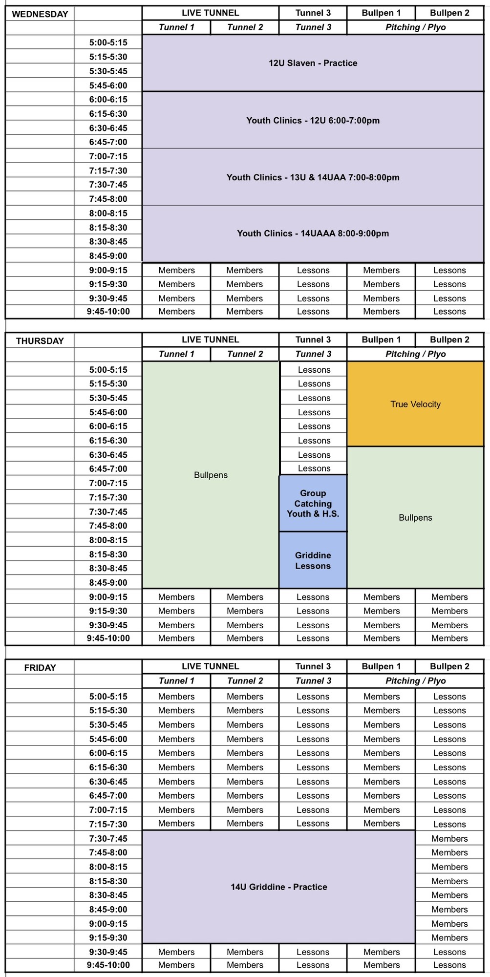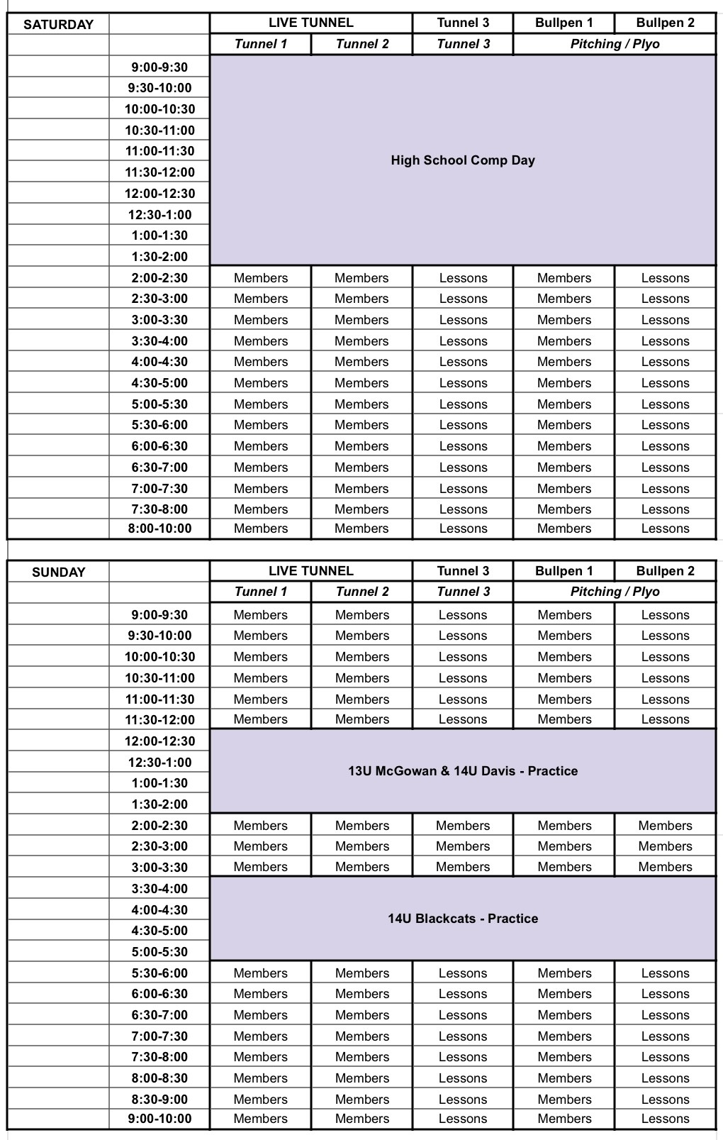 KANSAS FACILITY SCHEDULE