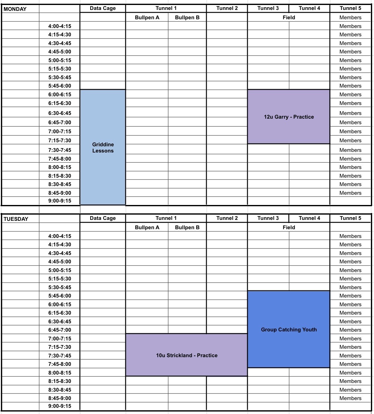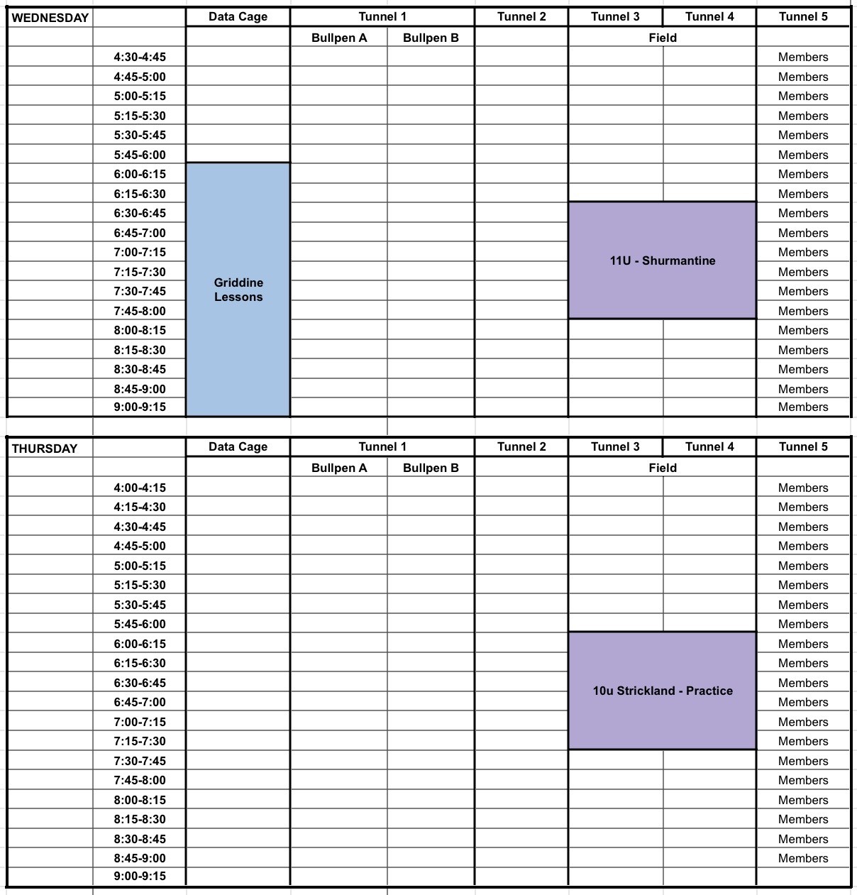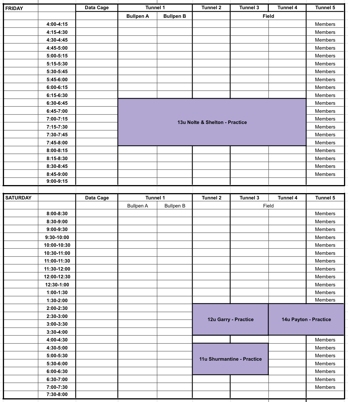 Missouri Facility Schedule